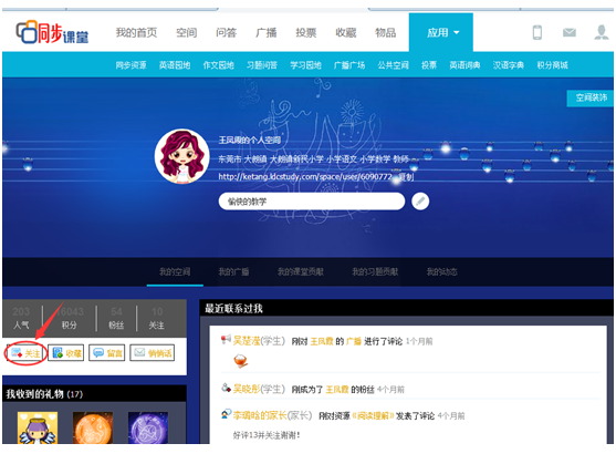 进入想要关注的平台用户的空间,点击“关注”即可关注该用户。如下图: