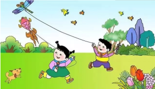 星期天的上午,天气晴朗,微风阵阵,公园里五颜六色的鲜花都开放了。小东和妹妹一起到公园去放风筝。天上的小鸟叽叽喳喳地叫着,好像在和风筝比一比谁飞得高呢!