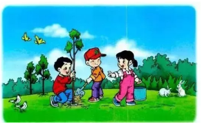 你看,小东扶着小树,兰兰培土,甜甜浇水,他们干得多认真呀!