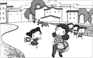 太阳快要下山了,我们也放学了。走在回家的乡村小路上,我看到伯伯们扛着农具、牵着水牛干完活从地里回来,看到阿姨提着菜篮正准备去菜园摘菜,还看到几个小朋友在一起开心地玩游戏……