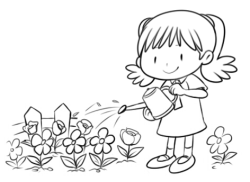一个阳光明媚的早晨,小红提着花洒给院子里的鲜花浇水。这些花儿开得多好啊,有红的,有粉的,有黄的,有白的……五颜六色,真好看!它们在风中摇摆着身体,仿佛在说:“小朋友,谢谢你给我们浇水!”