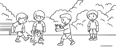 放学回家的路上,小明看到有几个小学生在欺负一只小猫。小明紧紧地皱起了眉头,走上去制止他们:“你们这样做是不对的,我们要好好爱护动物。”几个男生理都不理小明。小明说:“你们想一想,假如你就是这只弱小的猫,被人欺负了,会有什么感觉?将心比心,不能因为自己比别人强大就要去欺负别人,外面还有很多比你们还强大的人。”他们听了之后,终于停下了动作,难为情地低下了头。