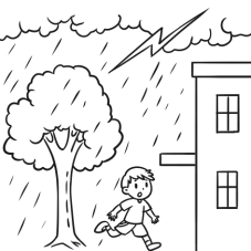 傍晚,天空乌云密布,突然下起了大雨。李明没带雨伞,只好淋着雨跑回家。雨越下越大,李明路过一棵大树,他想躲在树下避雨。这时,天空中闪过一道闪电,雷声轰隆隆地响起来。他想起老师说过打雷闪电的时候不能站在树下躲雨,于是加快脚步跑回家去。