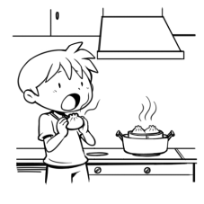 早上,厨房里飘来一阵阵诱人的香味,小明口水都快流下来了。他走进厨房,打开锅,哇!里面蒸着几个香喷喷的肉包子!他数了一下,一共有4个包子,刚好一人一个。于是他迫不及待地拿起一个包子,大大地咬了一口,真好吃!