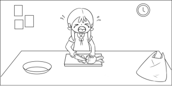 一天小红放学回家,看到妈妈还没有回来,她想:妈妈工作这么辛苦,我要给妈妈做一顿饭,帮她减轻负担。于是,她从冰箱里把胡萝卜和蔬菜拿了出来,洗干净之后放在砧板上,然后拿起了小刀,认真地切起胡萝卜来。但是胡萝卜太硬了,她一个用力,不小心切到了手指。这时,妈妈回来了,她看到小红流血的手指,心疼地抱住了小红,说:“谢谢你,宝宝,但是刀子太危险了,小朋友不能玩哦!”