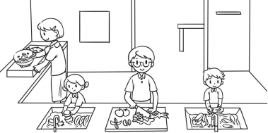 晚上,我们全家人一起动手做饭。我和妹妹负责把蔬菜都洗得干干净净;爸爸负责切菜,爸爸的刀工真好,他切的每一条菜丝大小都一样;妈妈是总厨师,她负责炒菜,锅里传来一阵阵香味。在我们的分工合作下,不一会儿,晚饭就做好了。今天的饭菜特别好吃,因为这是我们全家人的劳动成果。