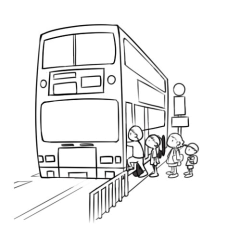 有一辆双层的公共汽车停在了公车站。人们不争不抢,一个接一个、有顺序地排队上车。司机叔叔看到了,笑眯眯地和大家打招呼。