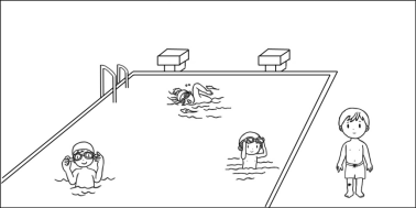 今天早上,我去小区里的游泳池游泳。游泳池里只有几个人在游泳,他们戴着泳镜,穿着泳裤,在水里游得非常开心!这时,我才想起来,我只穿了泳裤,忘记戴泳镜了!于是我跑回家去,戴上泳镜再去游泳。