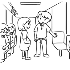 公交车上,一位大肚子的阿姨慢慢地走到了车厢中间。旁边的座位上坐着几个年轻人,有的在低下头玩手机,有的眯着眼睛在睡觉,但是没有一个人给她让座。一个叔叔站了起来,他说:“你来这儿坐吧。”阿姨说:“谢谢你,你真是个好人!”这时,叔叔一瘸一瘸地走到了车厢后面,大家才知道原来他的腿脚有问题。那几个年轻人脸都红了,连忙站起来把座位让给他。