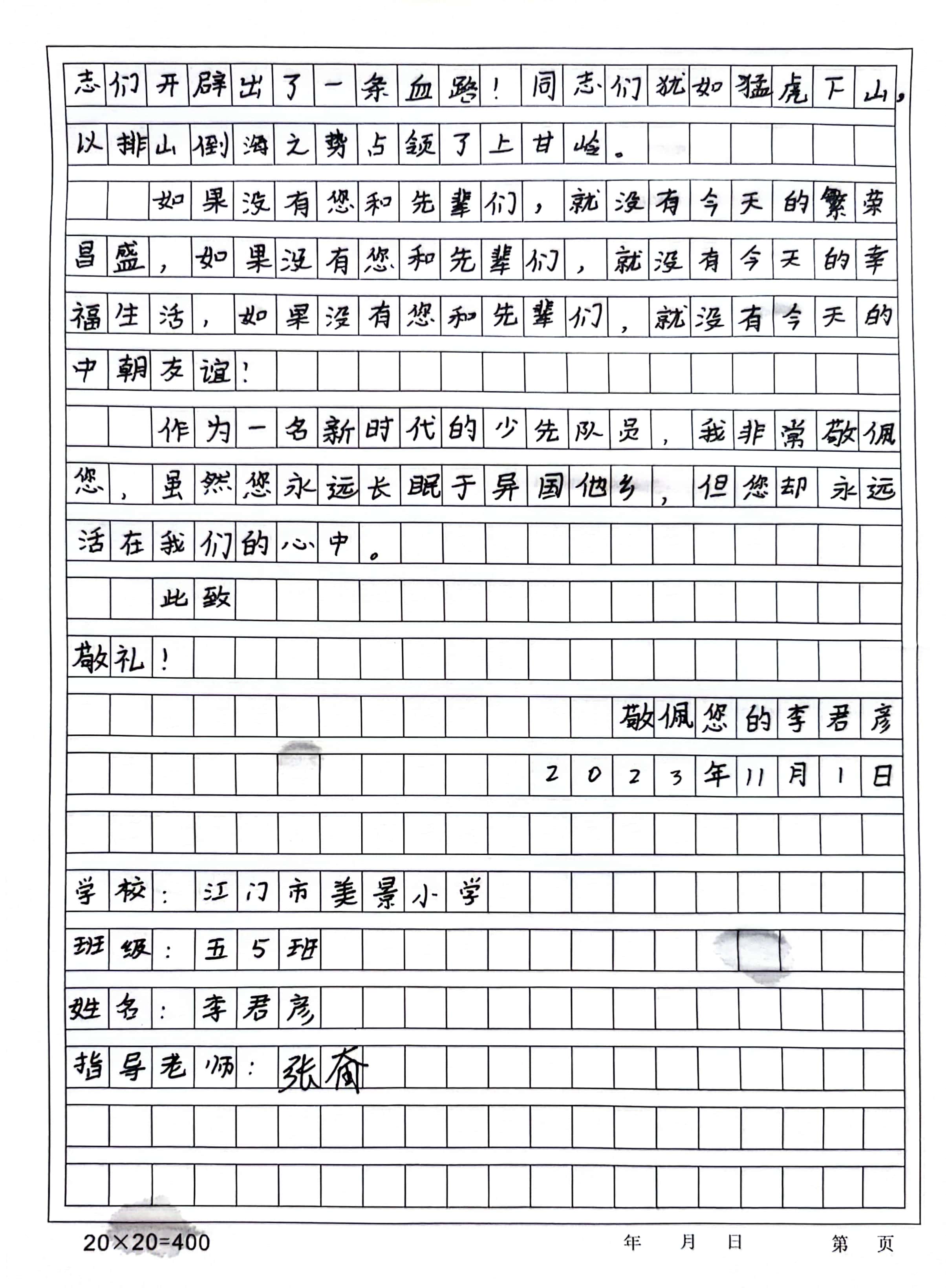 何俊曦(2023/11/4 3:28):已浏览和点赞8!敬请您的回访!麻烦帮点赞!互相支持! 有访必回! 致董存瑞的一封信 https://ketang.ldcstudy.com/portal/res/show/1959895.shtml